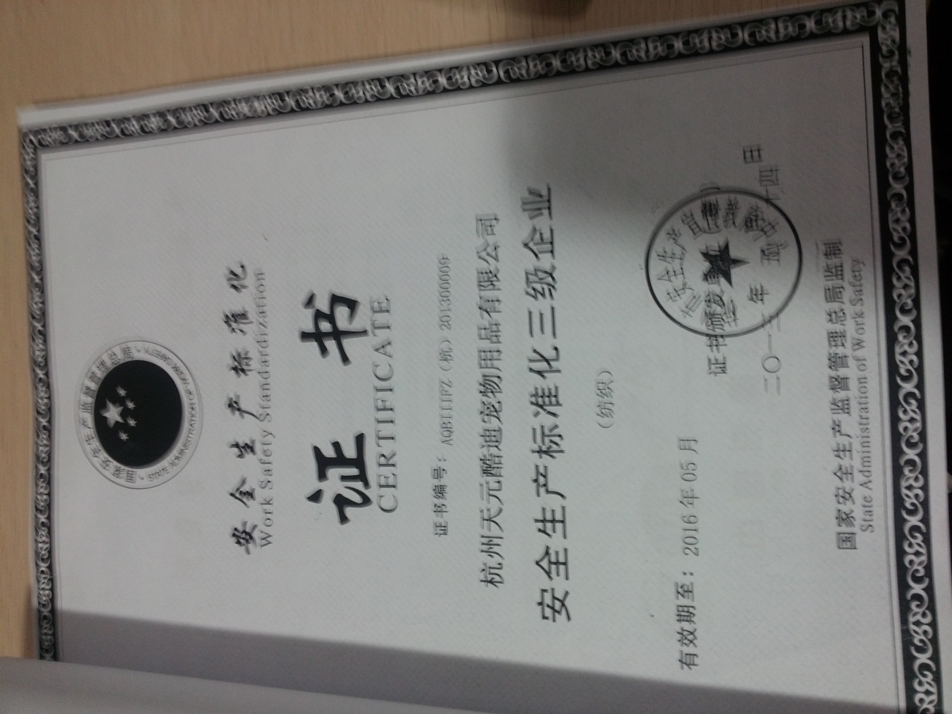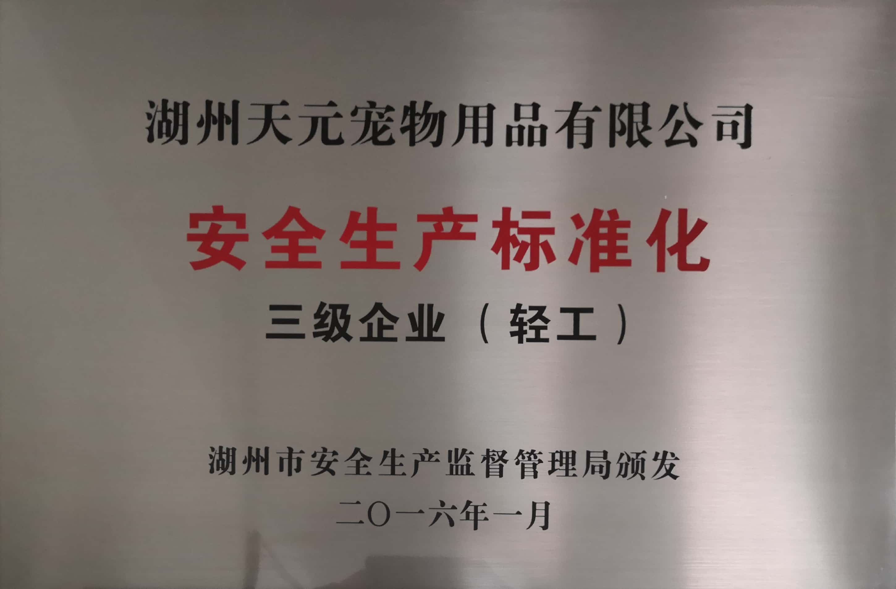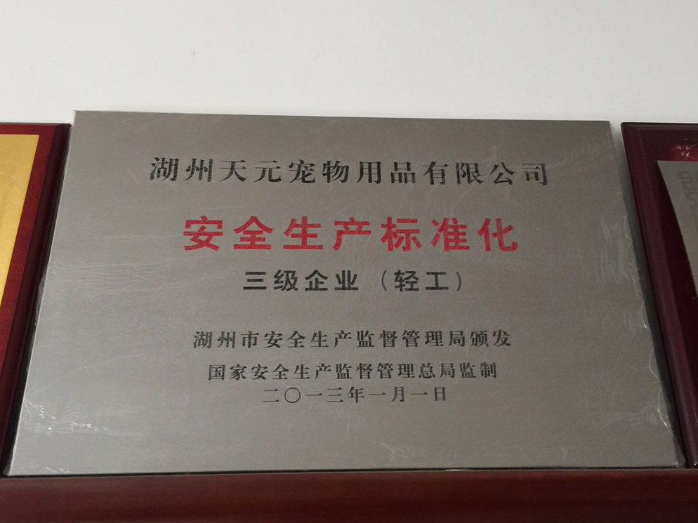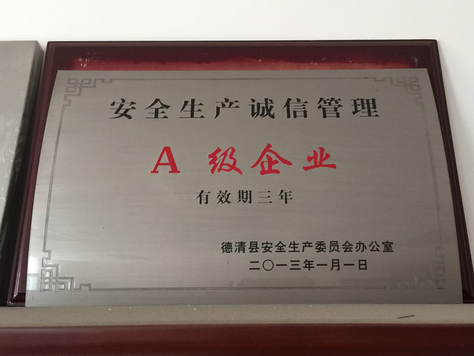 湖州米兰被评为“安全生产标准化(轻工)三级企业”,“安全生产诚信管理A级企业”。