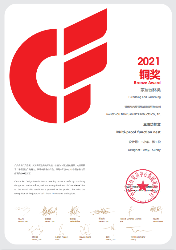 公司拥有一支专业的研发团队,共计开发9大产品品类;拥有240项国内外专利技术(截至2021年12月31日),共计30000余款新型宠物产品。注重产品新功能、新主题、新材料、新品类的创意企划与设计,实现了对宠物休息睡眠、活动空间、玩耍出行、清洁饮食、人宠互动等多场景使用需求与全品类产品的有效覆盖。