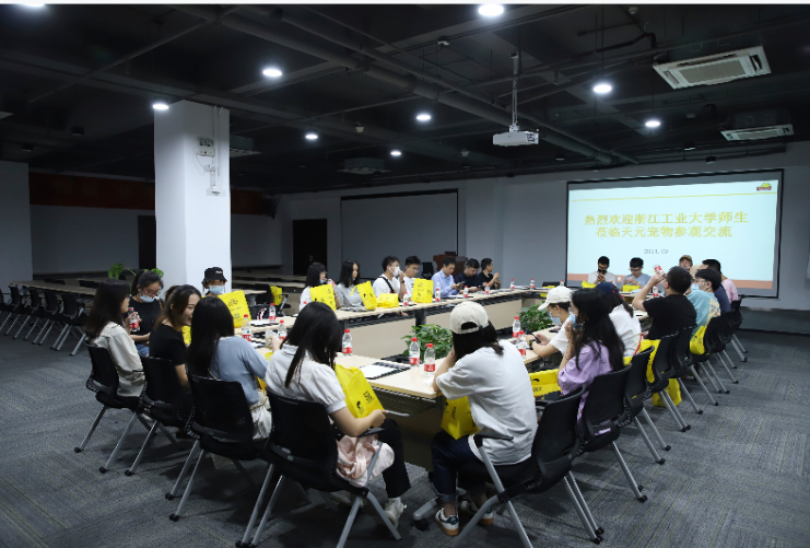 随后,在三楼会议室召开双方研讨会。「米兰宠物品牌总监崔剑」代表公司对「浙工大师生」表示热烈欢迎。「浙江工业大学杨红春教授、朱昱宁副教授」与在场学生交流分享并表示此次参观让学生对宠物用品市场有了进一步的认知,宠物对我们来说也是生活中的一部分,宠物用品保证了宠物健康成长,并增进了宠物主与宠物的情感,同时也为宠物提供一个安全舒适空间。