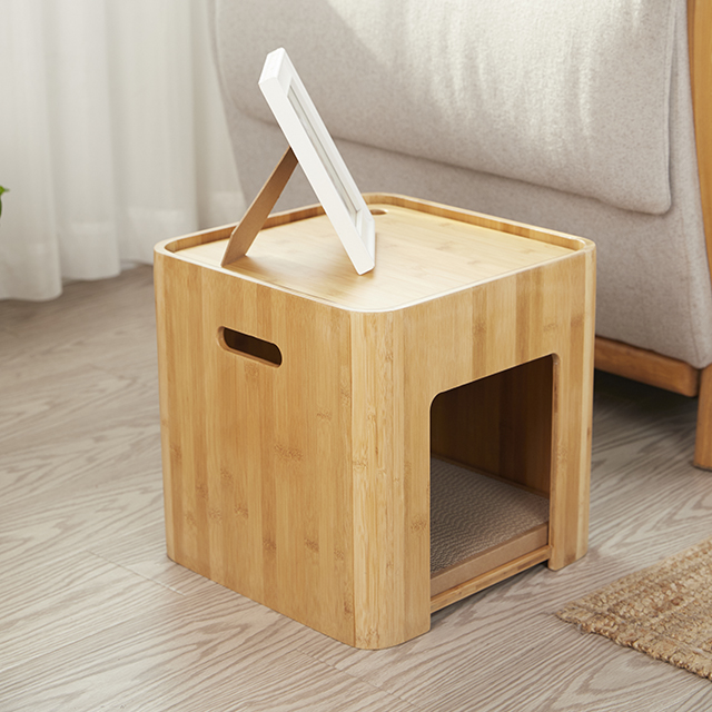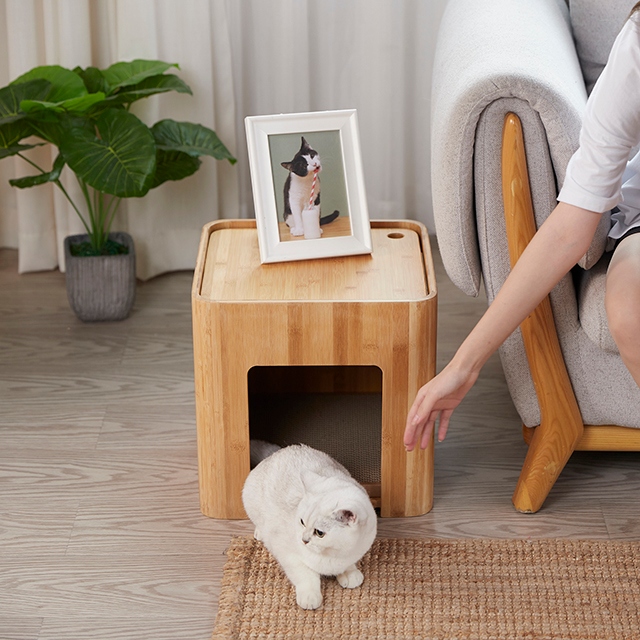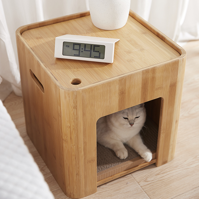 多场景宠物猫窝 既是小家具又是宠物窝,人宠和谐共用; 天然楠竹,打造静谧空间; 宽大开口设计,满足爱宠钻箱子的乐趣; 内置大面积猫抓板,释放磨爪本能; 移动盖板冬暖夏凉.