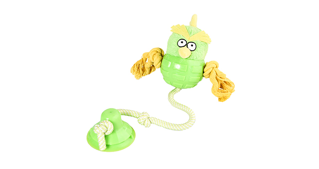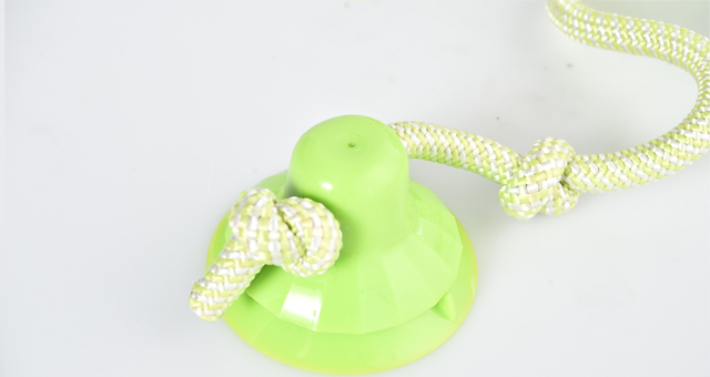 2. 玩具一端做成吸盘,可以吸附在任何平整的平面上,吸力强大可以与狗狗角力.